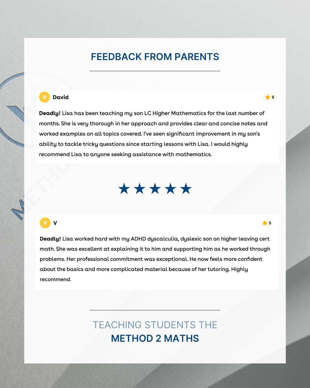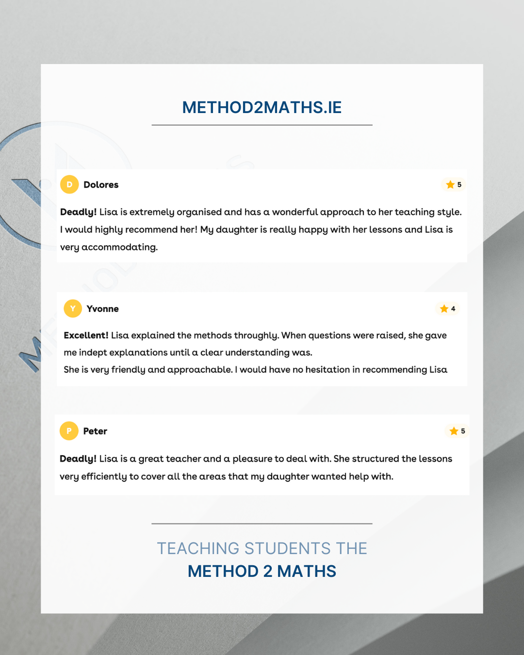 Step-by-step solutions, teaching students the Method 2 Maths.